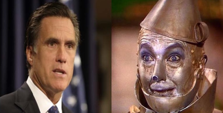 The Tin Man had no heart. A multi-millionaire, Romney has demonstrated he has no heart when workers who desperately needed work lost their jobs when a company bought