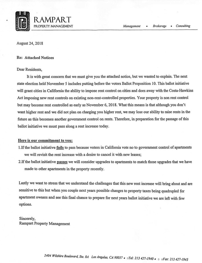 Landlords Charged With Voter Intimidation With Rent Increase Threats to Tenants if Prop 10 Passes